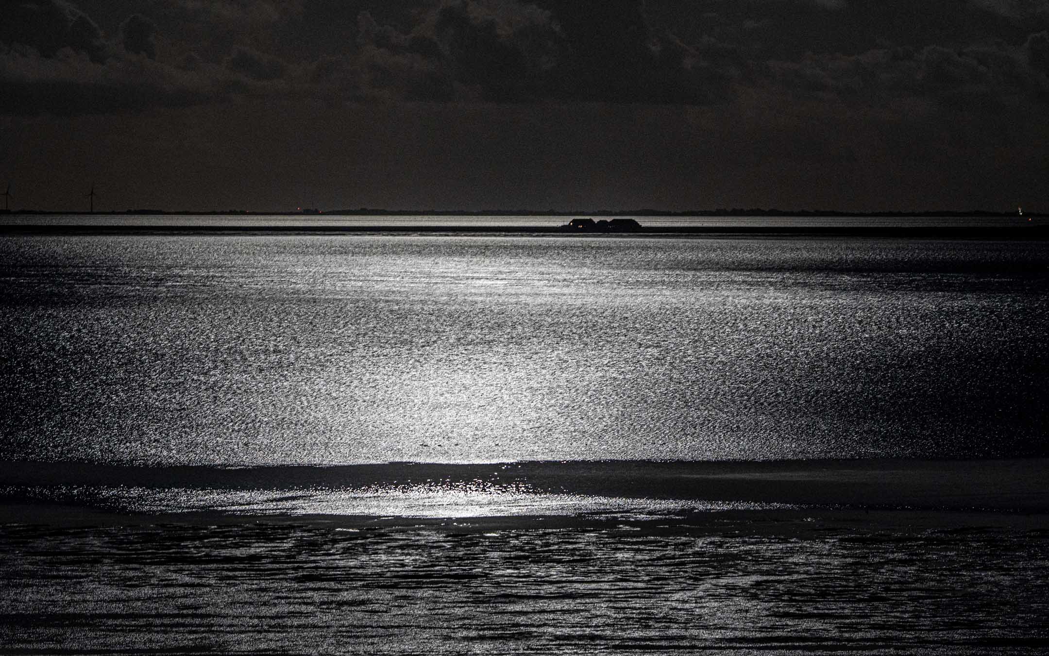 Endlich hatten wir daran gedacht, das Rollei-Reisestativ mit hoch zu nehmen. Noch später, bei nächtlicher Dunkelheit, scheiterten aber unsere Versuche, das Leuchtfeuer von Helgoland fotografisch einzufangen. Es leuchtete dermaßen unerkennbar schwach, dass es auf den Fotos nicht sichtbar wurde. Vielleicht ungünstige Wetterverhältnisse in Helgoland ? Nur der Mond tat sein Bestes.