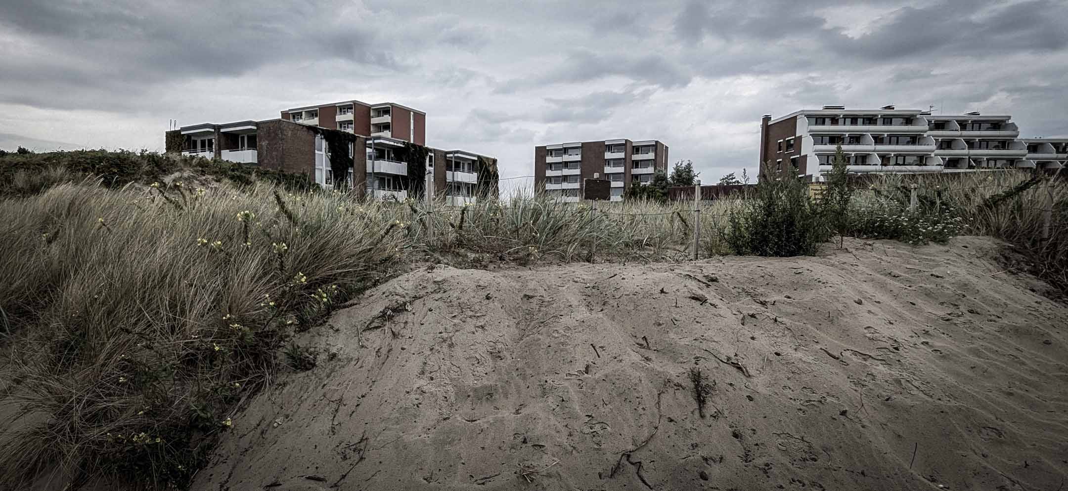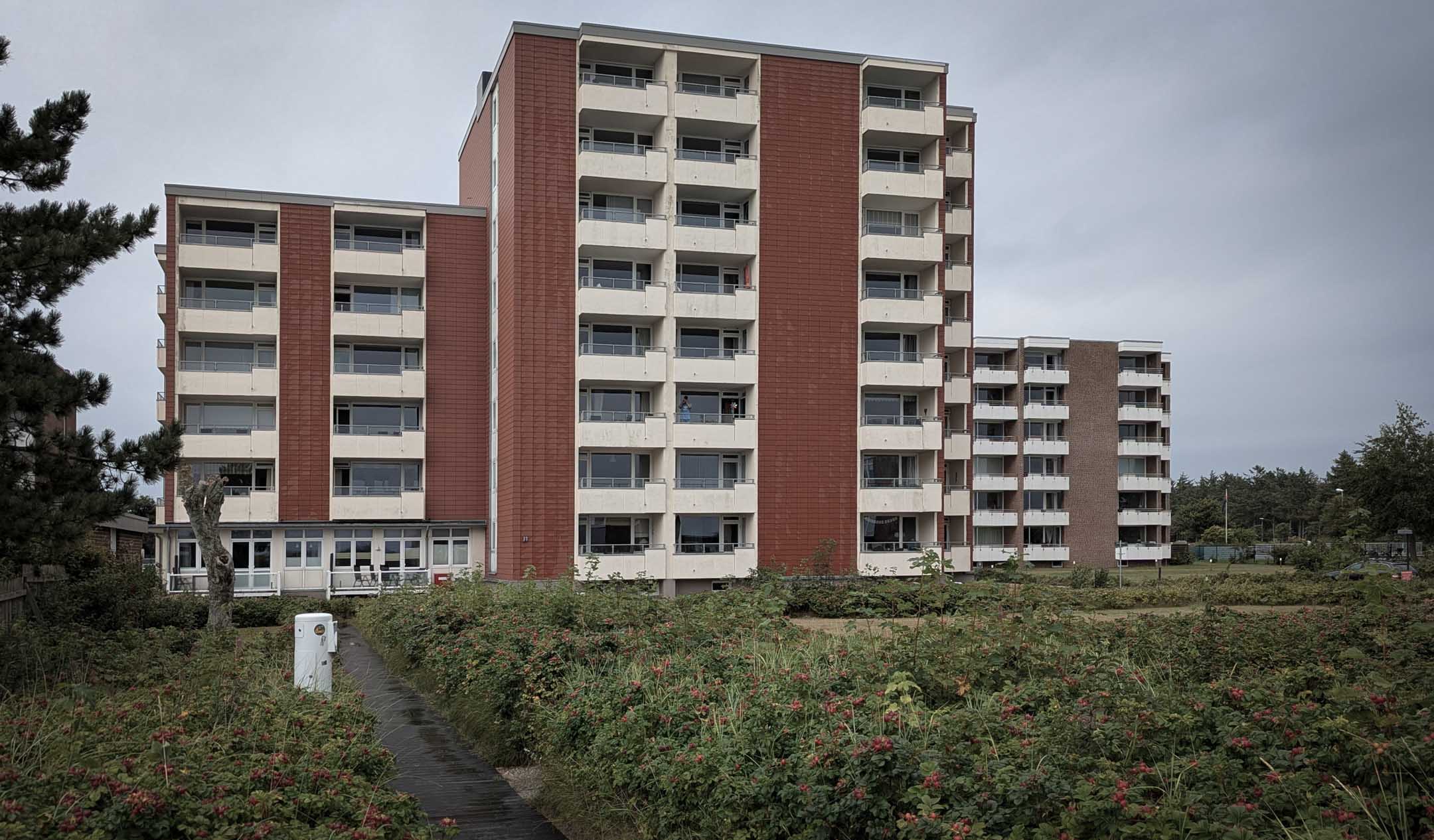 Unsere 8. Föhrreise, die vierte in jährlich ununterbrochener Folge. Immer Anfang September, außer 2024 (Ende September). Nach 3 x Agentur Anja Petersen war es Zeit, deren sehr dünnem Angebot fernzubleiben und zur Agentur Freienstein zu wechseln. Die Preisklasse ab 2000 € pro Woche kam nicht infrage, und so nahmen wir vorlieb mit vordergründig unmittelbarem Halligen-Blick als Lock-Angebot im Haus Uthlande gegenüber dem Flugplatz. Föhr-Kenner pressen jetzt die Lippen zusammen. Von außen sieht der Immobilien-Komplex tatsächlich aus wie ein durchschnittlicher sozialer Brennpunkt im Niemandsland zwischen Gelsenkirchen-Mitte und Altenessen-Süd. Aber wie erwartet entschädigt der Blick. Nach vorne zu den Haligen, von der Küche zum Flugplatz mit Tower bis Amrum-Leuchtturm. Innen ist alles durchrenoviert, die Erbauungszeit nur noch am Balkon- und Fensterzuschnitt zu erkennen. Zu Fuß ins Dorf braucht man eine halbe Stunde, mit dem Fahrrad ist man schnell überall. Am Nachmittag nach Ankunft sind wir die Strecke gleich zu Fuß abgelaufen. Auf der Strandpromenade, vorbei an den altbewährten Gastronomien