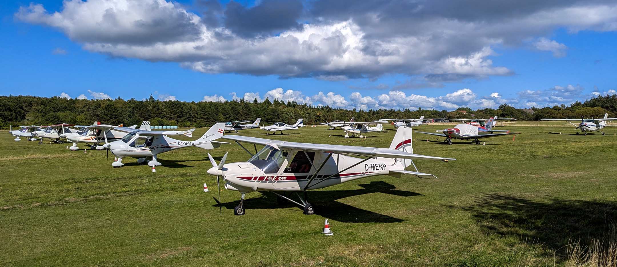 Der Hochsommer ist eindeutig zurück. Reisen wir heute wieder ab ? Nein, wir bleiben. Beim benachbarten Flugplatz, wo wir die ganze Woche über nur 2 Flugbewegungen gesehen hatten (1 x flog einer weg, 1 x Notarzt-Hubschrauber-Transport) schien heute Großflugtag zu sein. Unter anderem war auch ein Metallic-blaues Ufo angereist, welches unser Interesse weckte. Dazu 1 x USA, 12 Deutsche und vor allem 4 Flugzeuge mit Schweizer Wappen am Schwanz waren gekommen. Sofort werfüllte uns die Sorge, ob Föhr den hohen und höchsten Ansprüchen der Schweizer genügen kann. Wären sie nicht besser gleich nach Sylt geflogen ? Vielleicht doch ganz andersrum : Wir stellen uns vor, dass sie mit dem Bus zum Hafen, von dort mit der Fähre nach Amrum und dann zu Fuß weiter zur Heide-Kate wollen, wo lt. der seit Jahrzehnten unveränderten Speisekarte alle Schnitzelgerichte „mit Käse überbacken“ auf der Speisekarte stehen.